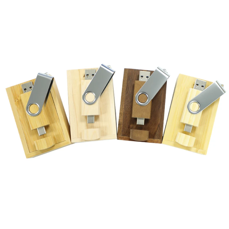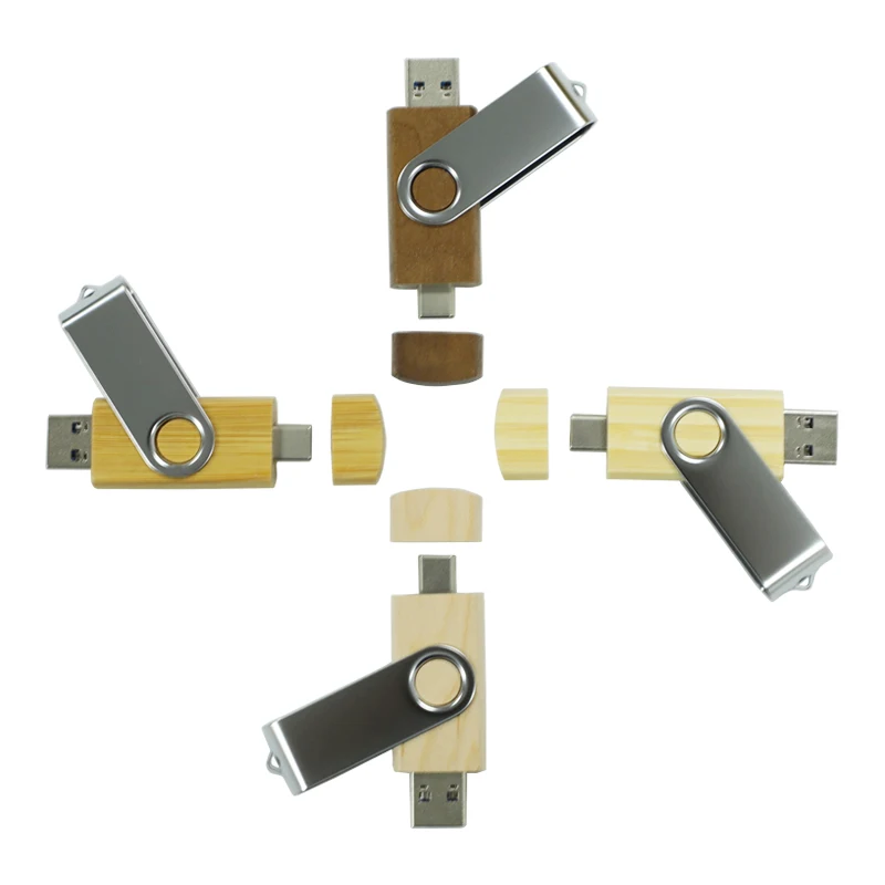 Custom Wooden Twister OTG USB 2.0 3.0 Flash Memory Stick Maple Walnut Swivel Type C Pen Drive for Phone Tablet Notebook Laptop