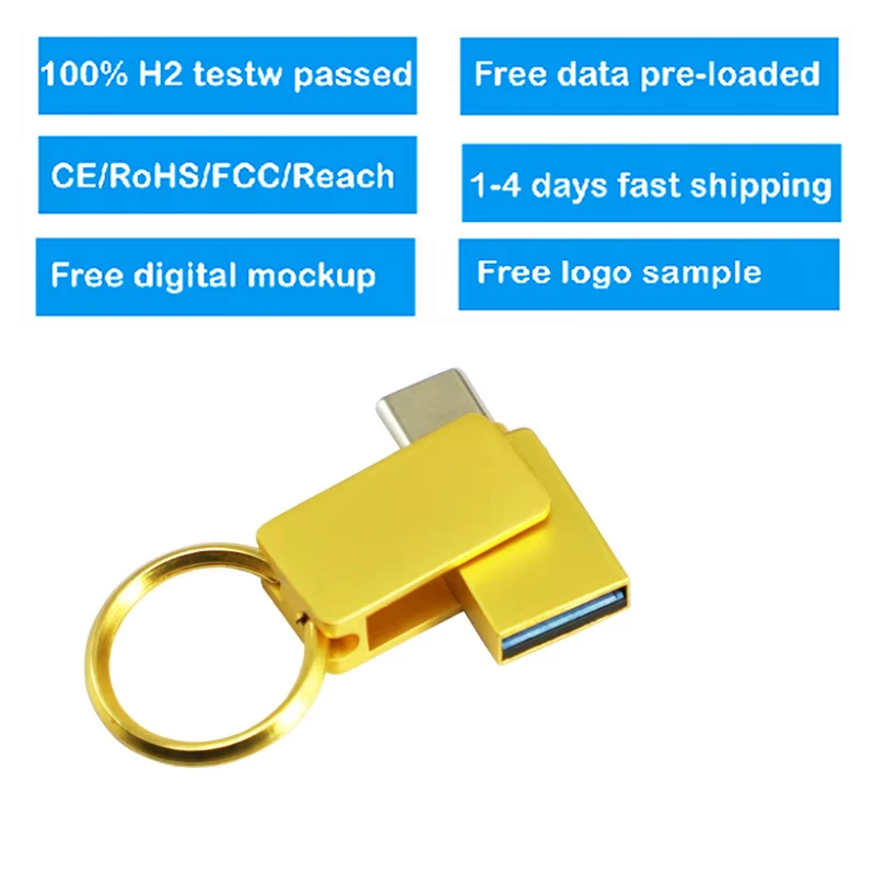 Wholesale Price Mini Size Keyring Metal Usb c Otg Flash Drives 2.0 8GB 16GB 32GB 64GB Dual Port Type c Otg Usb Flash