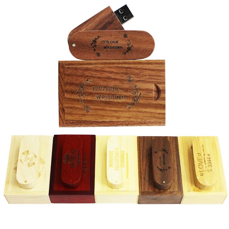 Wholesale Swivel Wooden Pen Drive 2.0 3.0 4GB 8GB 16GB Pendrive 32GB Memory Stick Wood Usb Flash Drive 64GB 128GB